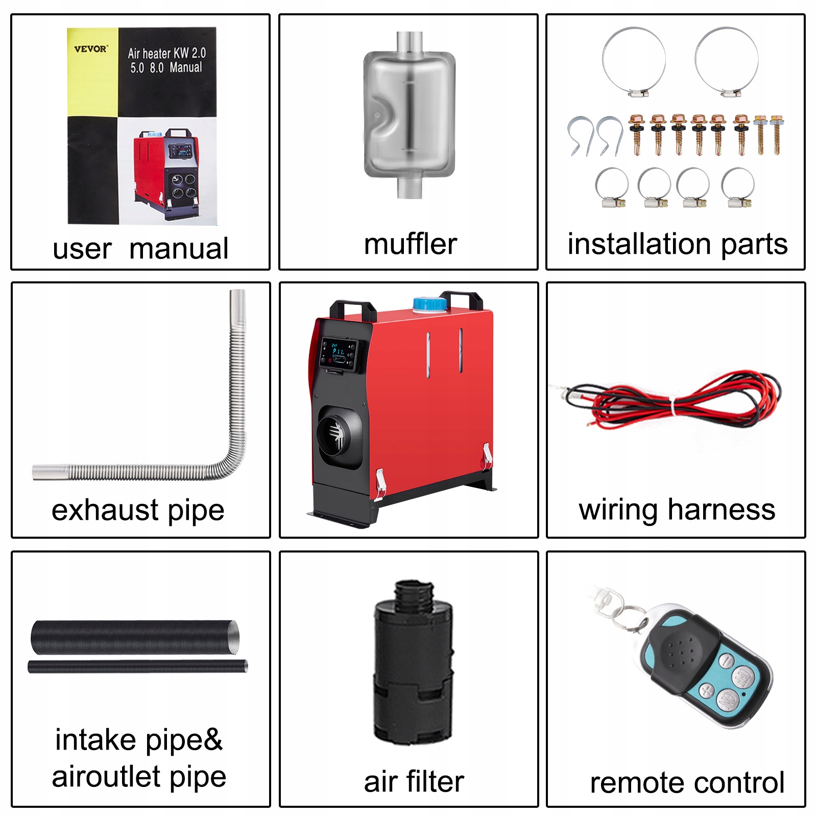 Náš poschodový ohrievač sa dodáva s kompletným montážnym balíkom vrátane všetkých základných častí, potrubí a nástrojov. Ľahko sa používa a môže byť flexibilne inštalovaný na viacerých miestach vášho vozidla.