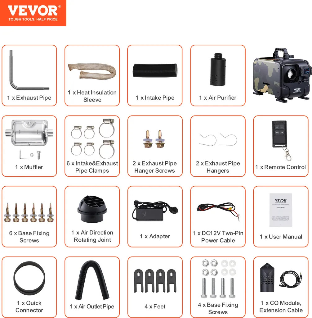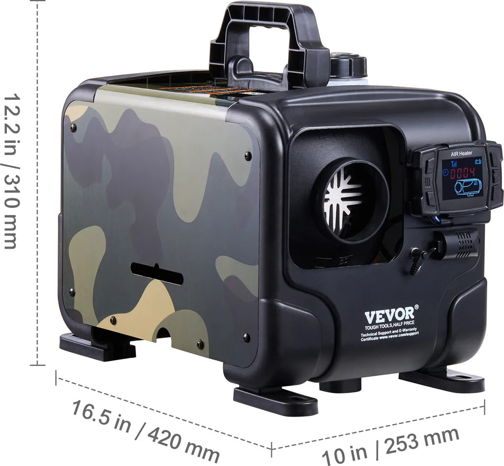 A kiváló minőségű hangtompítóval és üzemanyag-szivattyúval felszerelt dízel fűtőberendezés csendesen működik, anélkül, hogy megzavarná pihenését vagy utazását. A nagy fogantyúval ellátott kialakítás megkönnyíti a szállítást a garázsba, lakóautóba vagy más kültéri helyszínekre.