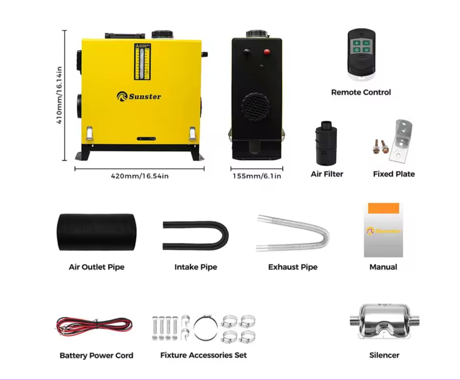 Sunster A2013SL je kompaktné, 8 KW naftové teplovzdušné kúrenie, určené na vykurovanie vozidiel (karavanov, dodávok, nákladných áut, lodí) a iných vnútorných priestorov. Vďaka "All-in-One" dizajnu sú všetky hlavné komponenty (ohrievač, palivová nádrž, čerpadlo) integrované do jedného prenosného celku.